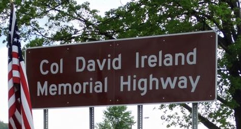 Left to right: Assemblywoman Lupardo with David Cleutz, Tom Haines, and Bern Mulligan. The three worked with Lupardo to erect the new historical marker; a Matthew Brady photograph of Col. David Ireland, commander of the 137th NY Volunteer Infantry; and the sign designating a portion of State Rt. 434 as the Col. David Ireland Memorial Highway.